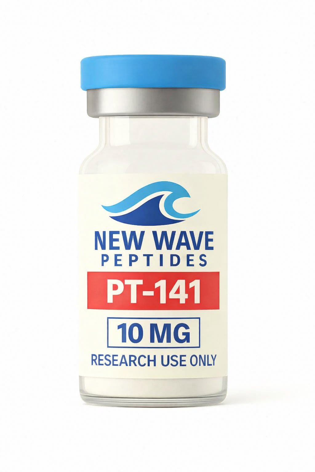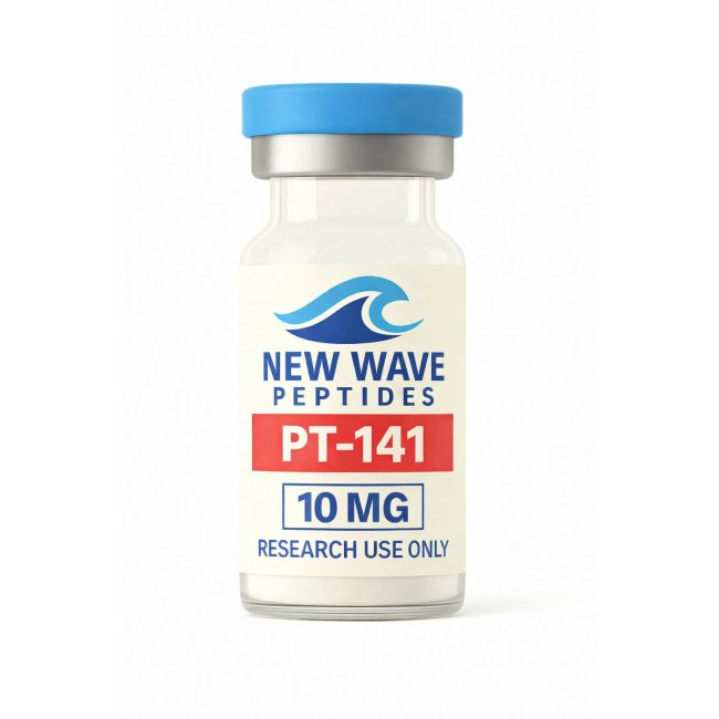 PT-141 (Bremelanotide) is a synthetic melanocortin peptide analogue studied for its interaction with melanocortin receptors in laboratory models. Researchers investigate PT-141 for its effects on neurological signalling pathways associated with melanocortin receptor activation. New Wave Peptides supplies PT-141 in 10MG vials, independently lab-tested and verified for purity, strictly for scientific use in controlled laboratory environments.