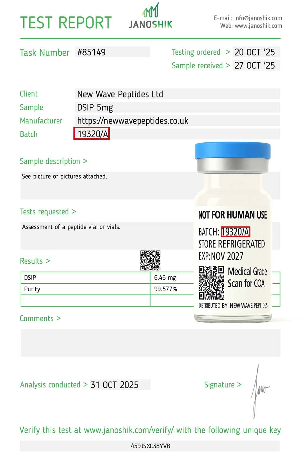 DSIP is supplied as a stable lyophilised powder, ideal for reliable reconstitution and handling in laboratory settings. For best storage conditions and reconstitution protocols, please consult the guidelines available on our website.